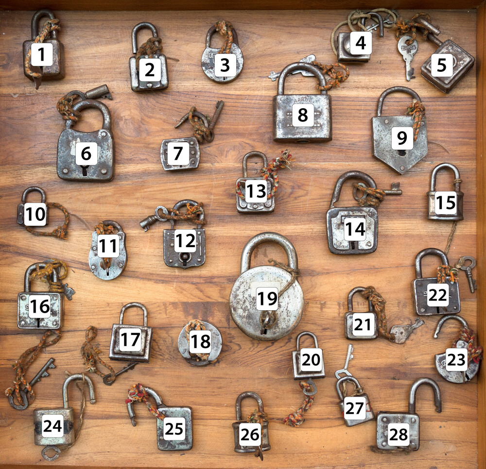 자물쇠는 하나의 원래 키와 함께 제공되며 소형, 중형 또는 대형 종류로 제공됩니다.