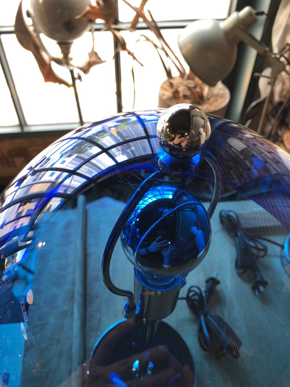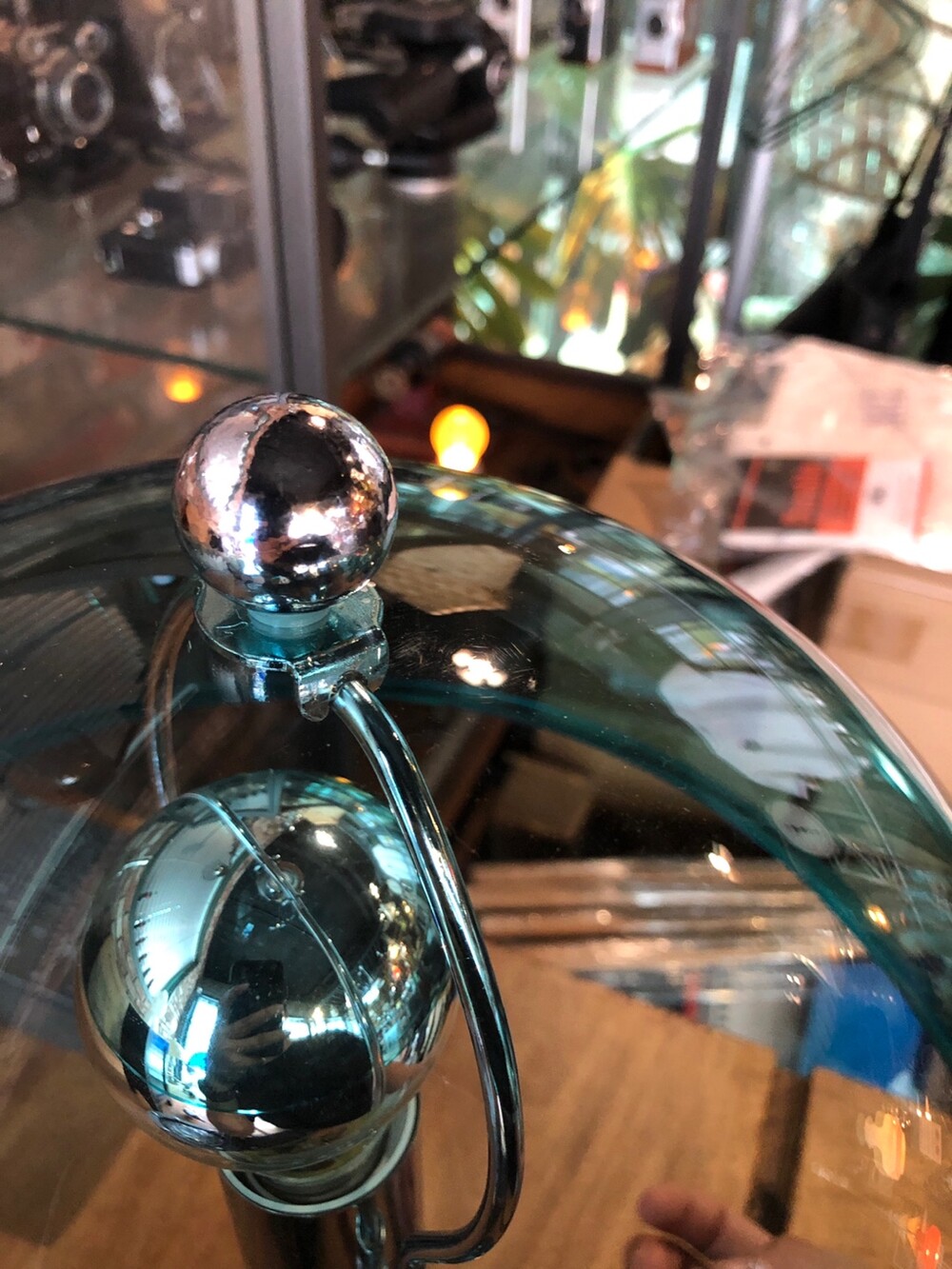 반원 형태의 아크릴 돔과 스테인레스 스탠드의 구성입니다.