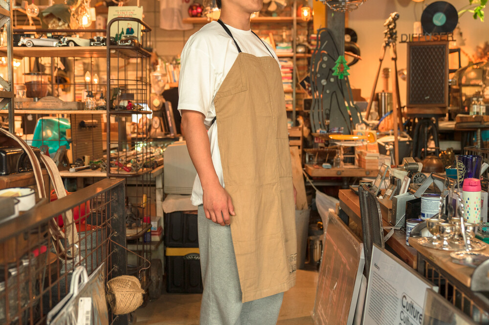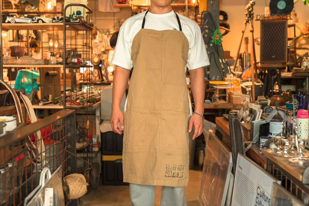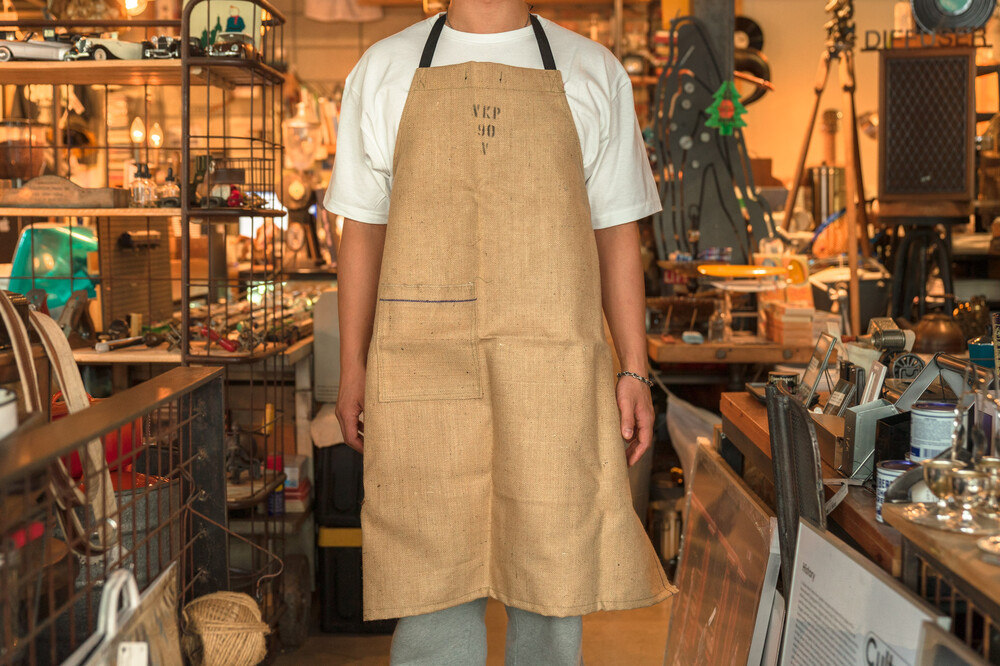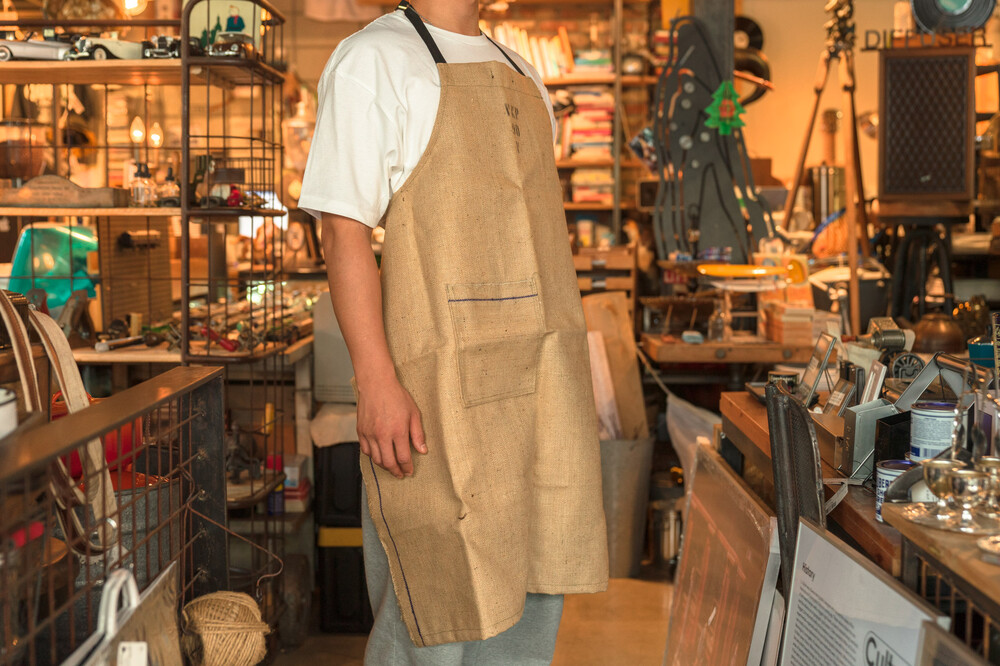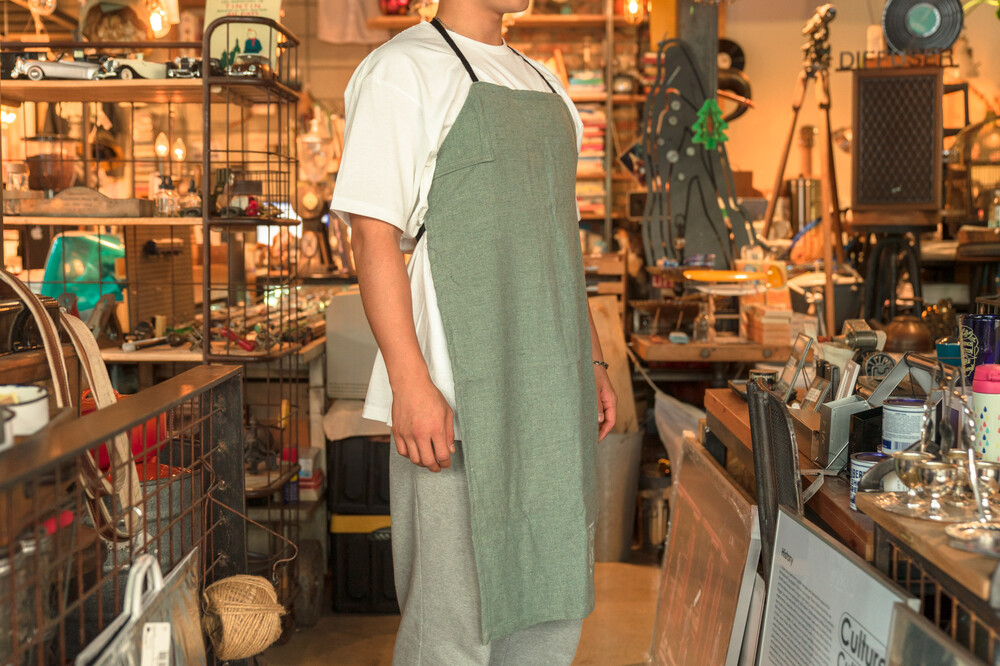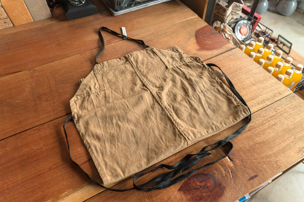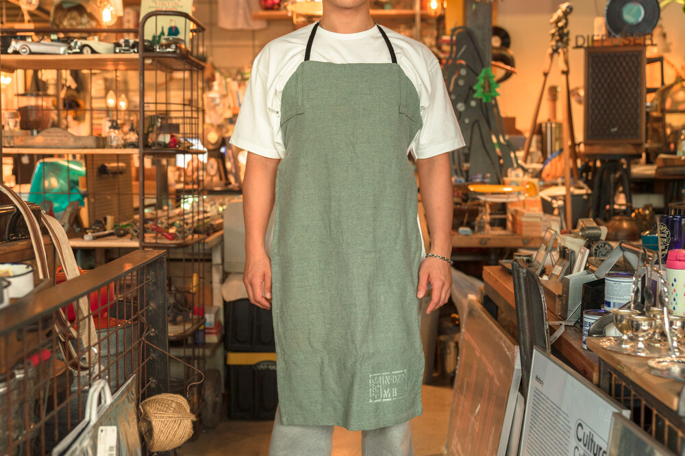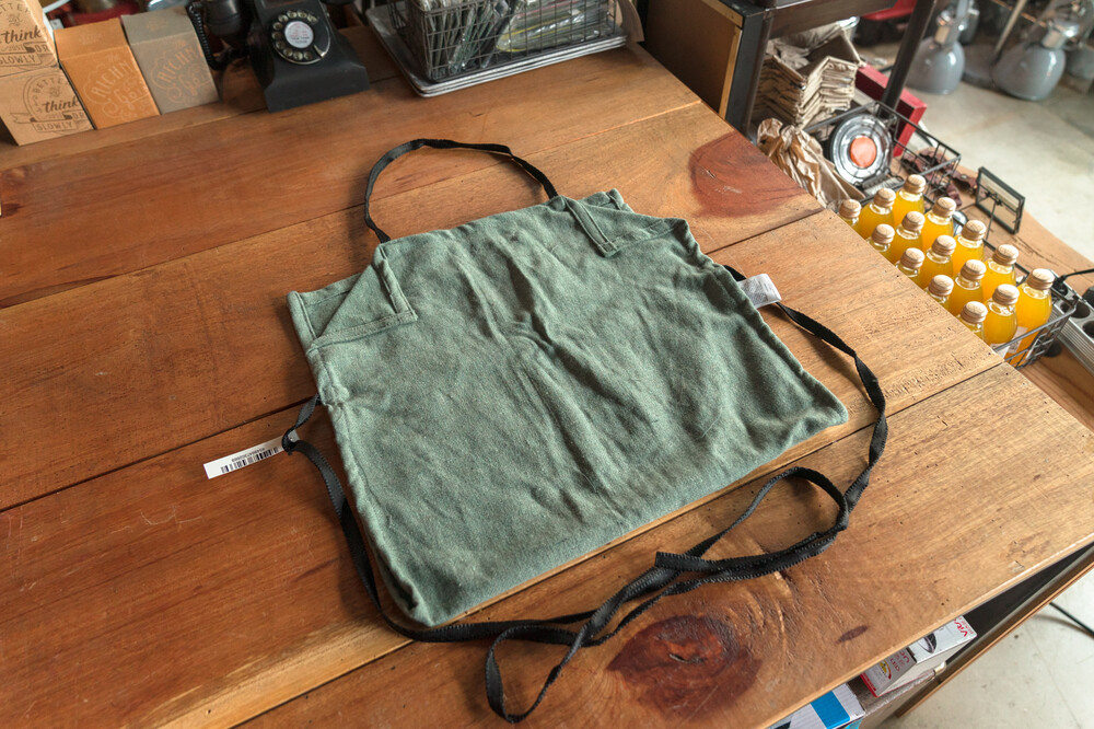 리사이클링 원단으로 만들어진 앞치마입니다.