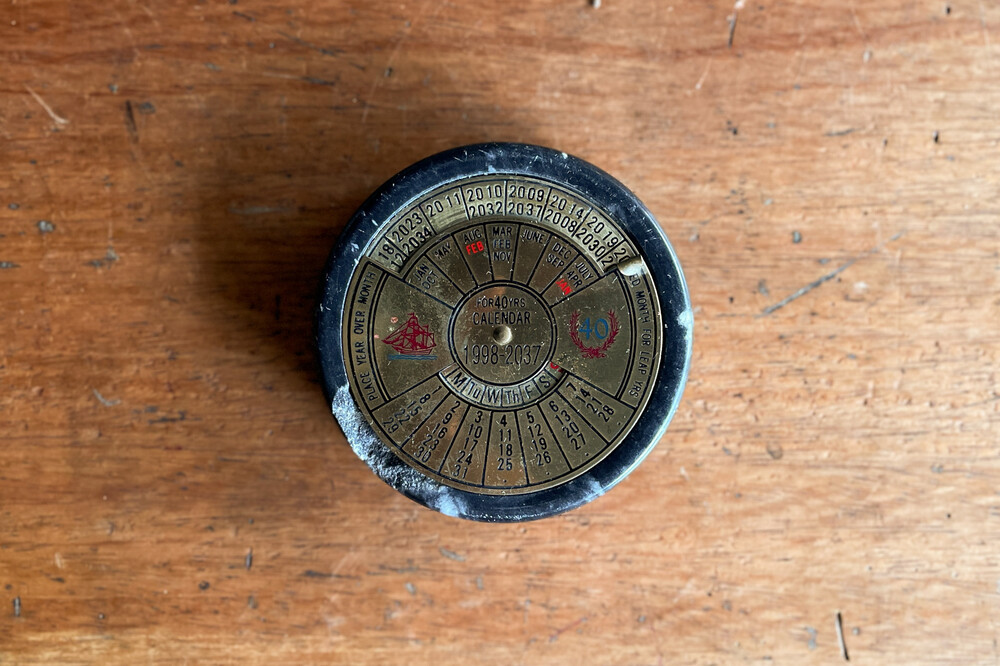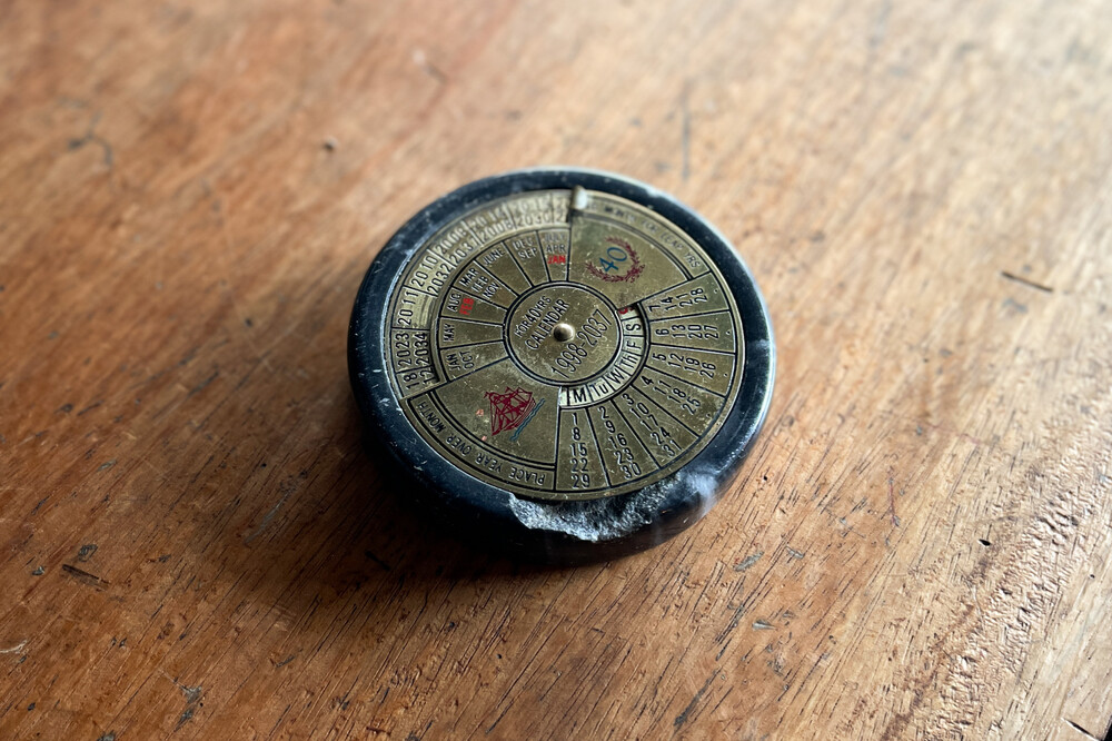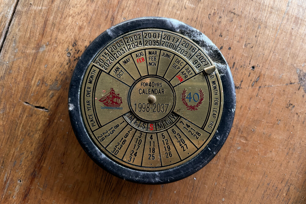Nautical 40 Years Calendar and Paper Weight 1998-2037 Black Marble and Brass