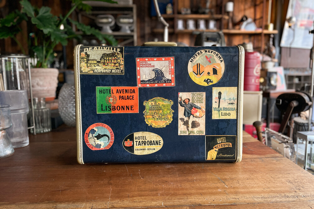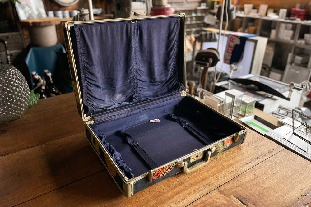 Navy - Leather Samsonite Schwayder Brothers Suitcase