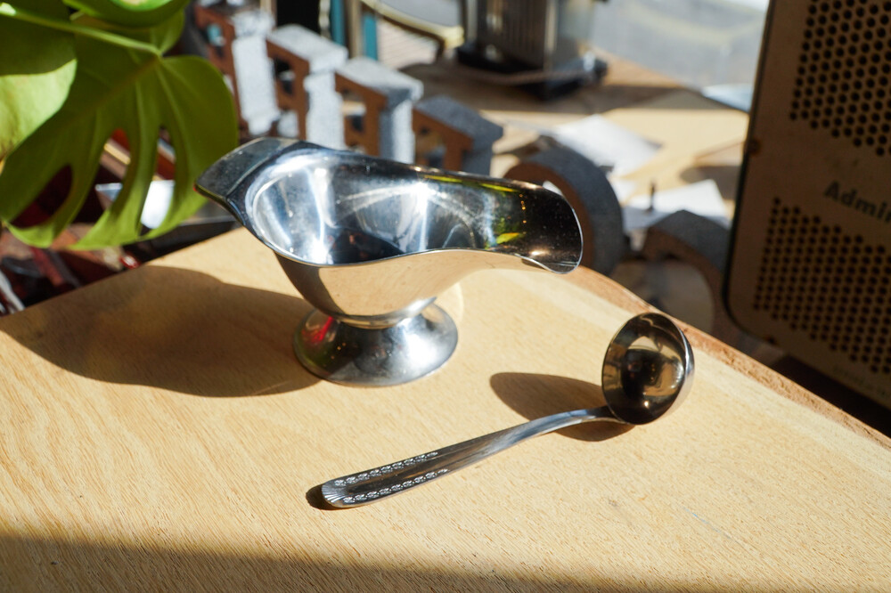 카레나 소스등을 담는 그레이비 봇과 국자 세트입니다.