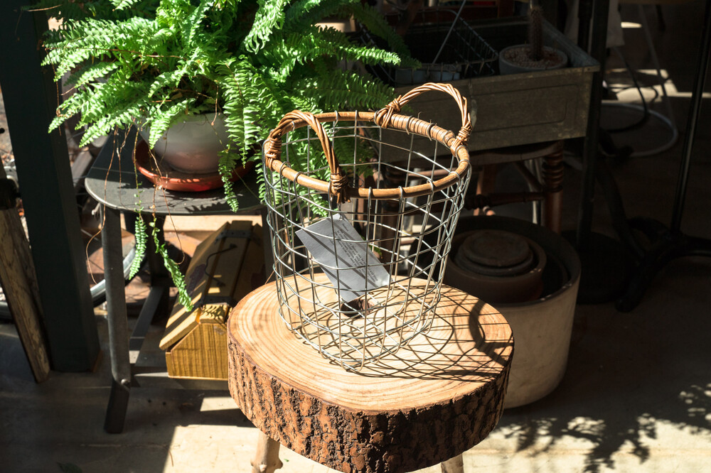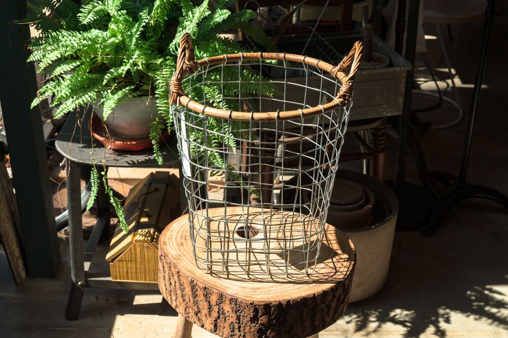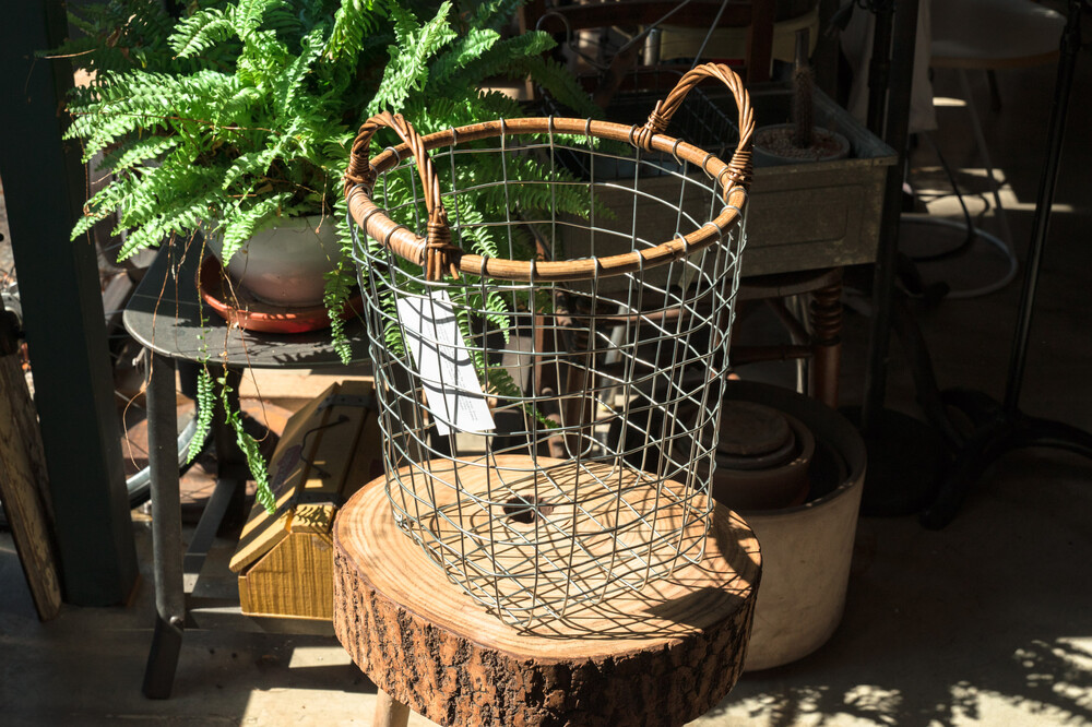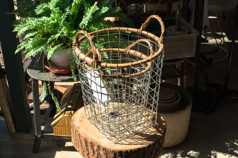푸에브코 PUEBCO / RATTAN TOP WIRE BASKET