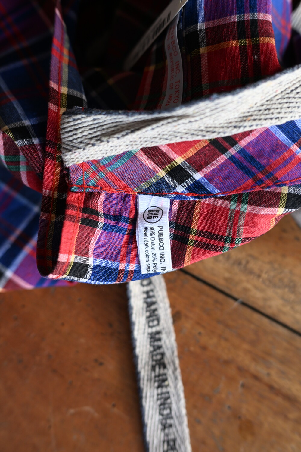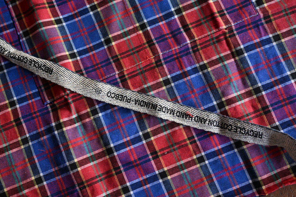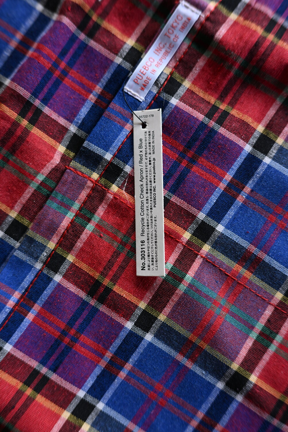 푸에브코 PUEBCO / RECYCLE COTTON CHECK APRON / Red x Blue