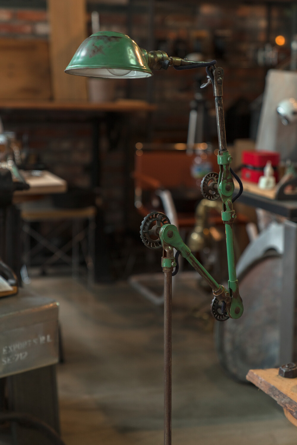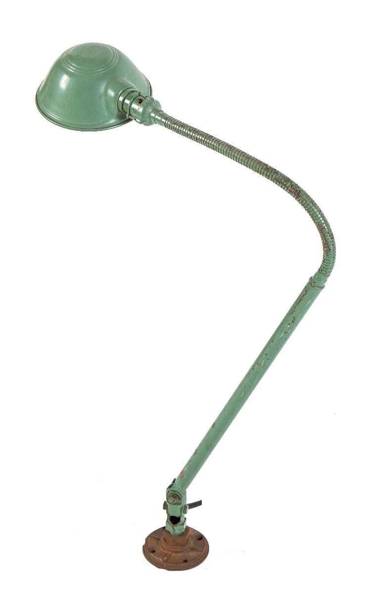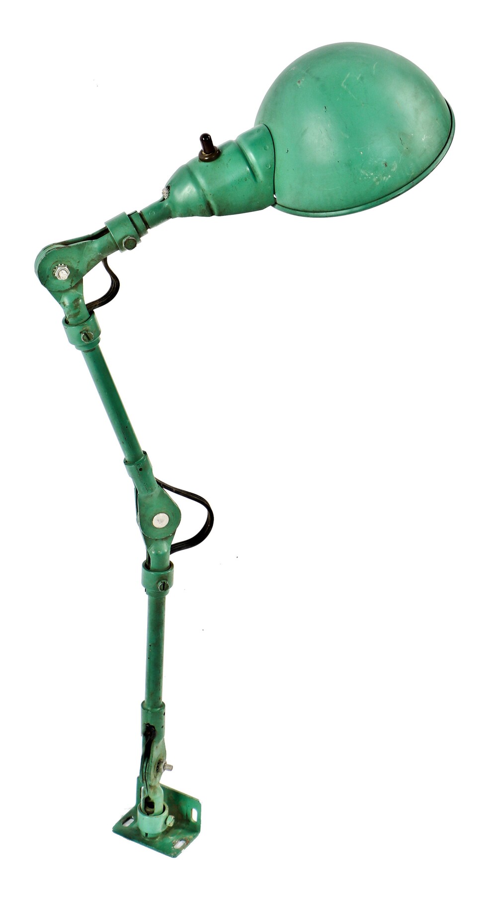 녹색 에나멜 칠이 되어진 C. 1940년대 미국 공장 조절식 작업장 램프입니다.