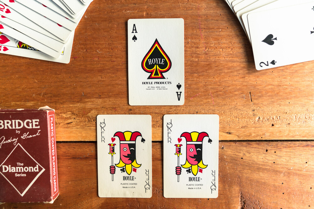 _ 빨간 조커에 사선으로접힘이 있습니다.