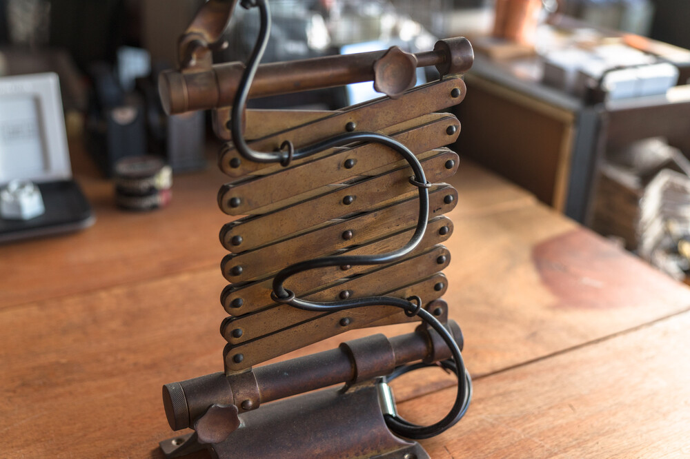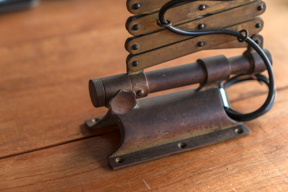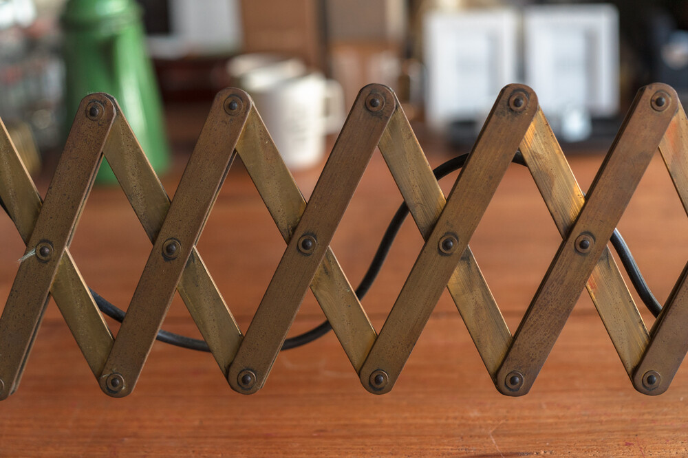 가위등 디자인은 1930년대에 도입되었으며 바우하우스 시대의 정밀 공학과 장인정신의 한 예이다. 램프에는 세 가지 조명 조정 방법이 있습니다. 그늘을 위아래로 각도 조정하고, 가위 암을 좌우로 흔들며, 부드럽게 벽에서 수축 및 연장할 수 있습니다.