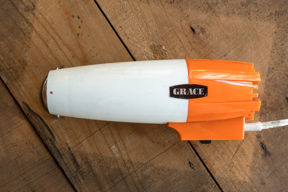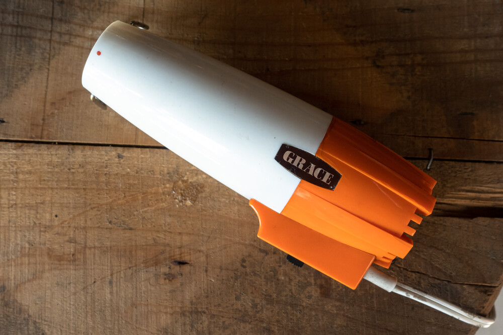 로켓 디자인의 레트로 헤어 드라이어입니다.
